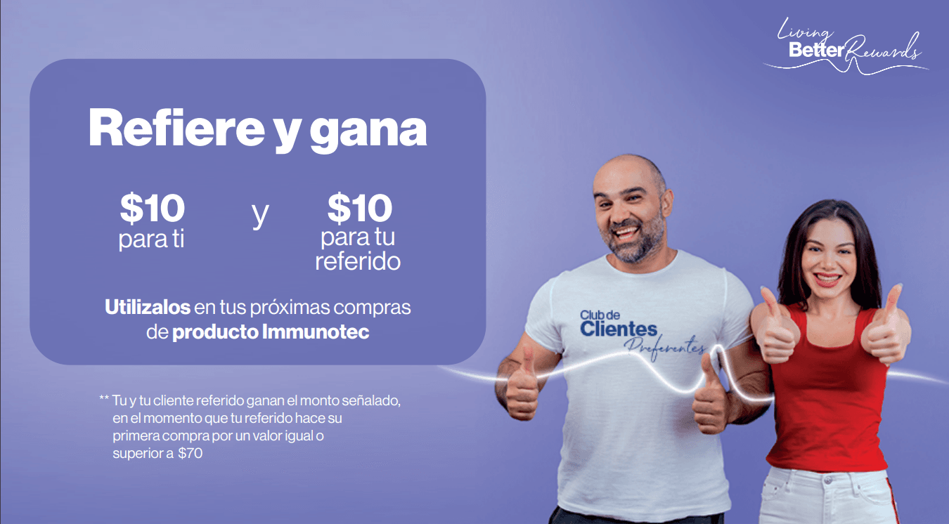 Sí, Immunotec te regala USD $20 en monedero electrónico por cada USD $200 de compra antes de impuestos y gastos de envío. Puedes acumularlos y usarlos como tú quieras*.
